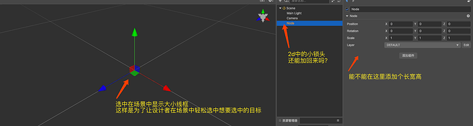 因为 Creator 3d 节点中不再有 size,如果是 ui 的话,添加 ui transform 组件,设置 size 也是可以选中的