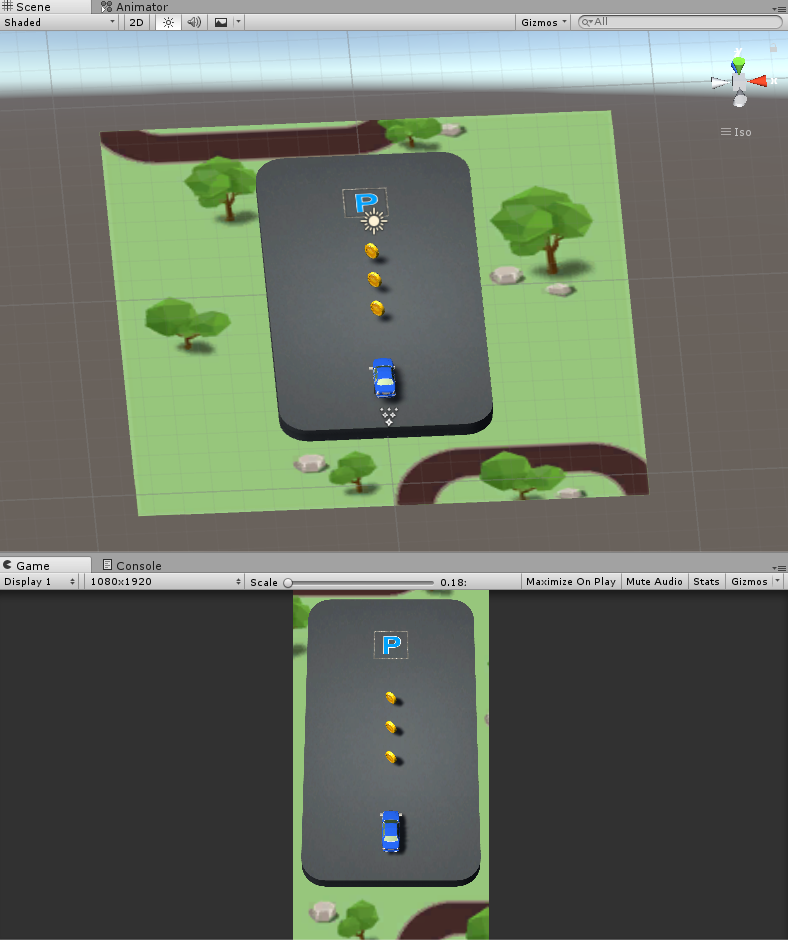 他那个是u3d,上面是游戏编辑场景,下面是游戏预览场景,(上宽下窄,然后运行之后看起来一样大小)