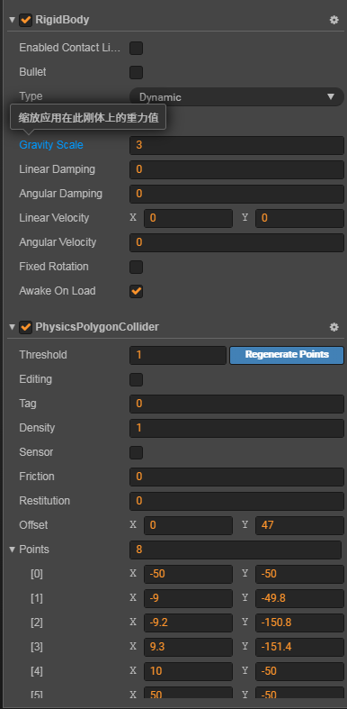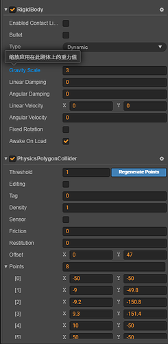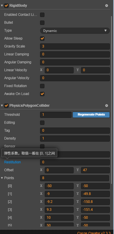 刚体弹力= 0 ,重力= 1 ,看看是你想要的效果吗