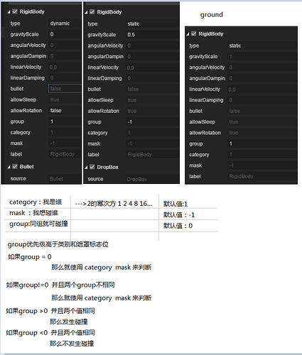 ####这个是LayaBox 不过box2d 原理是一样的。cocosCreator目前我只用过group来促使碰撞