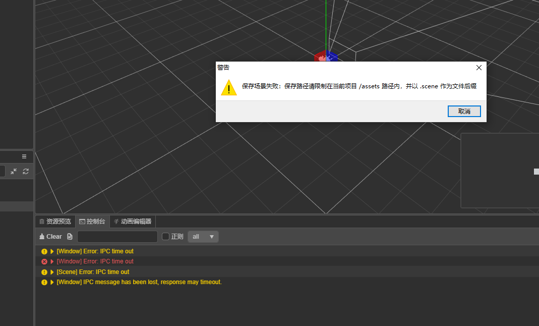 新建项目,保存场景失败