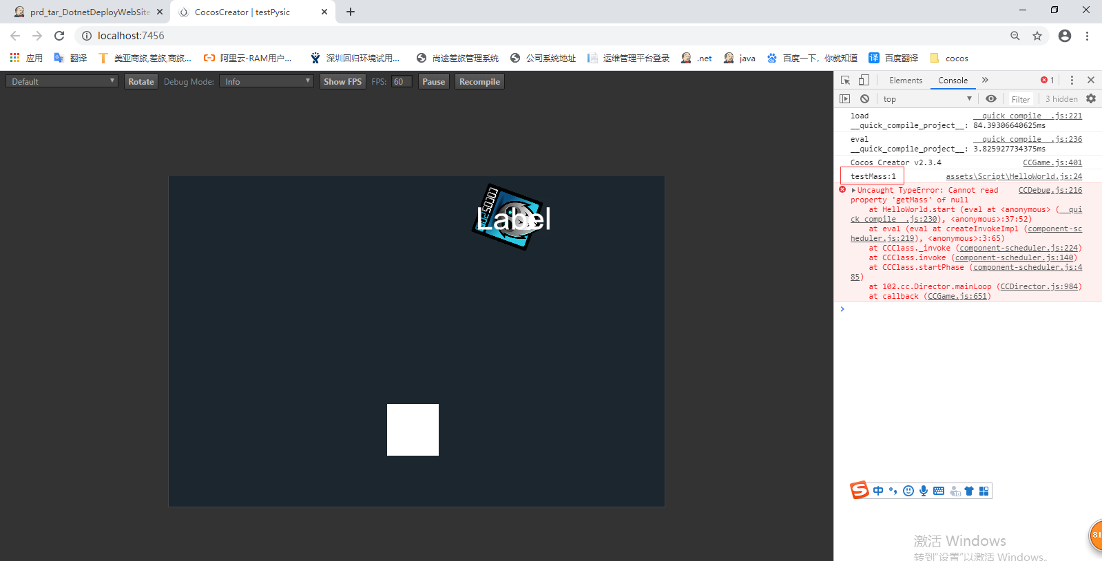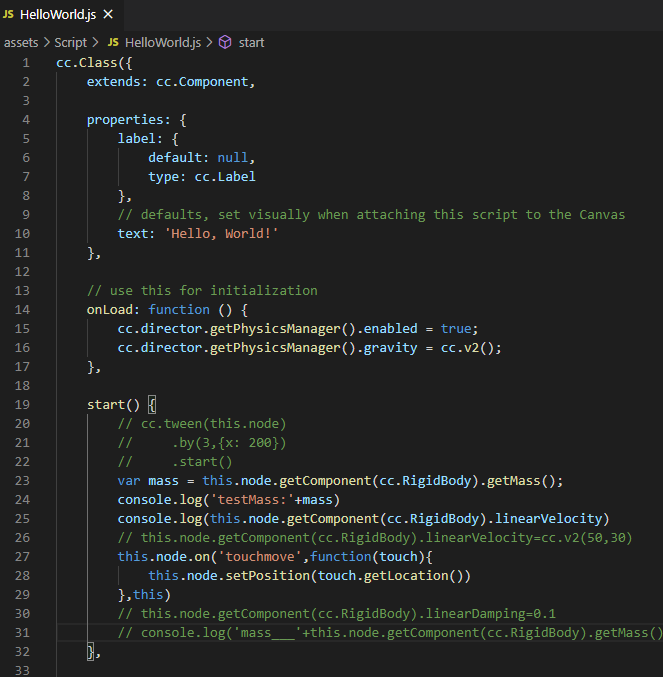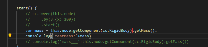 后来修改成getComponent的方式,可以获得mass的值,但是还是报错了:Cannot read property ‘getMass’ of null