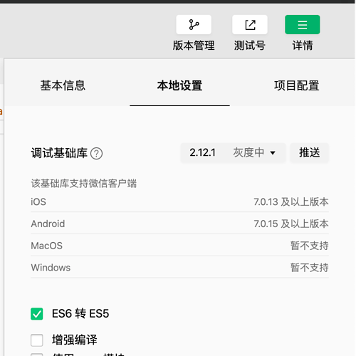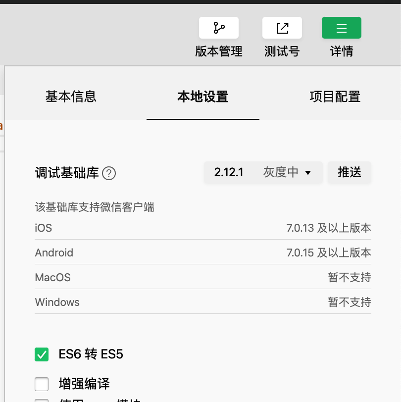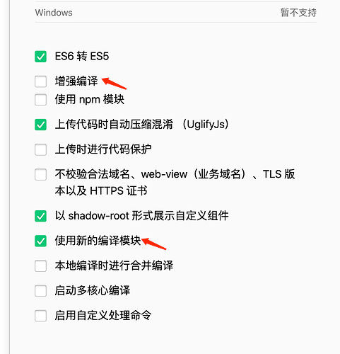 目前微信开放域不支持开启增强编译,请关了这个选项