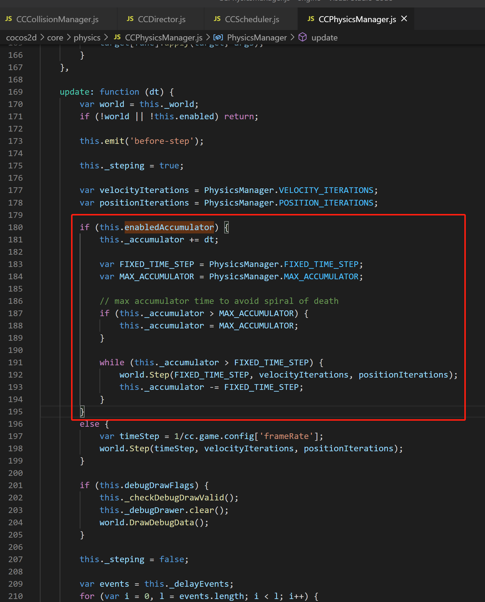 之后我又尝试自己手写了一个fixedUpdate(),把物理操作全部装了进去,然后在所有物理更新组件的update()里面写