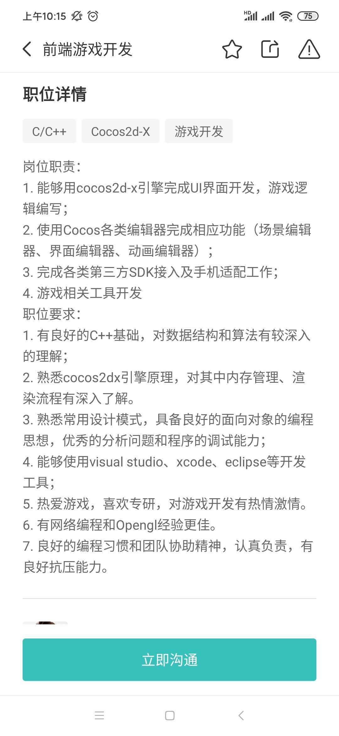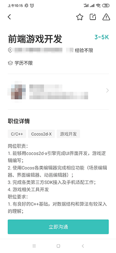 像我这种搞过一段时间客户端转到游戏的,就有点优势了。引擎关于oc或者java 自己动手就能改 不需要客户端同学帮忙