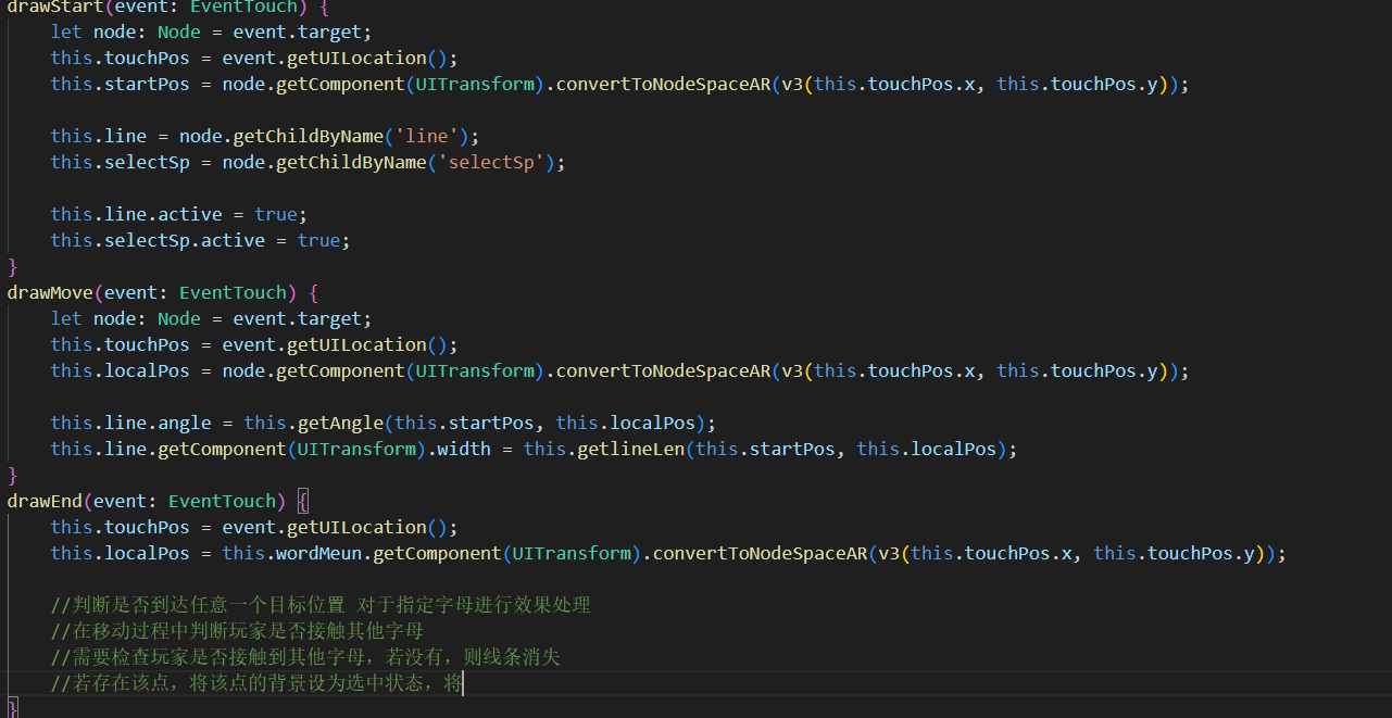 很简单 我做过一圈字母连单词的游戏,一天就写完了,就点击实例化长度为1的线,然后移动的时候更新线的长度,角度,判断位置,实例化两点的直线 就ok了