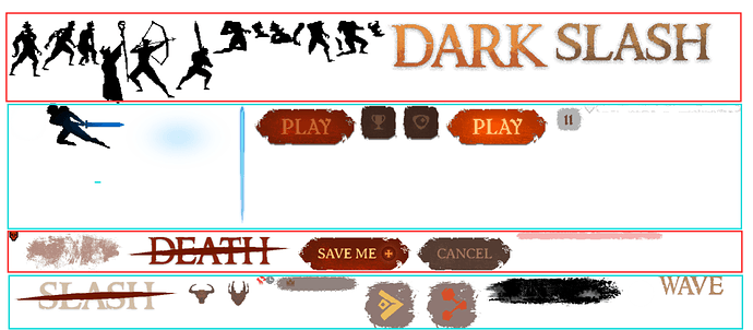 因此我们可以想到,如果能按照TexturePacker的合图方式来做动态图集的合图,那么无疑是比较理想的。当然这是可以的,我们可以自己写一个算法来计算合图时的位置和空间。也可以找第三方的算法。这里我推荐网上一个MaxRect的开源代码(c++版本,直接翻译成js版本即可)。代码我就不贴了,直接看使用这个算法的结果: