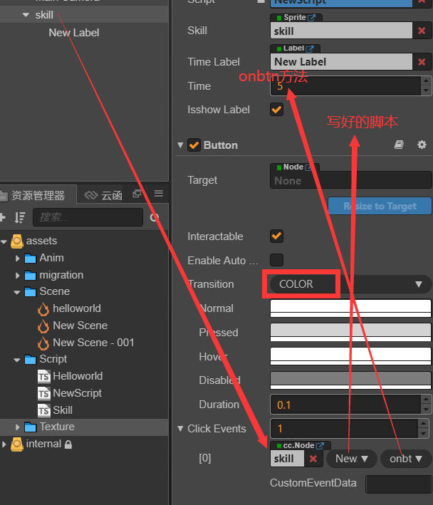 需要改动sprite(精灵)组件并且给技能按钮添加button(按钮)组件