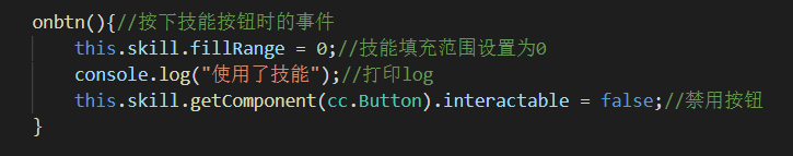 在点击技能按钮的时候想实现什么功能就把代码都放在onbtn里面就可以了
