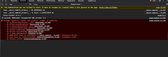 我发现一添加这个组件就报错let collider = tiled.node.addComponent(cc.PhysicsBoxCollider);添加其他组件都可以,就是物理盒子会报错,而且报length是什么意思?搞不懂