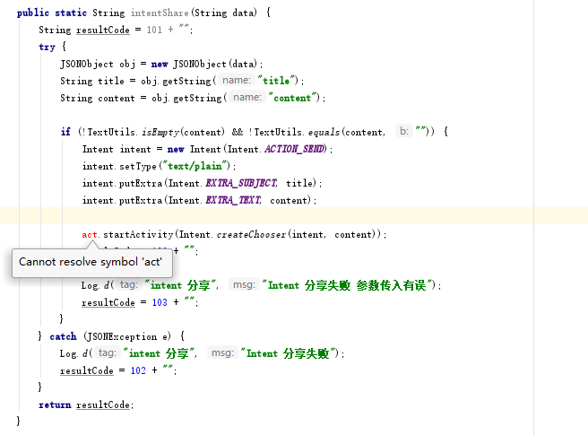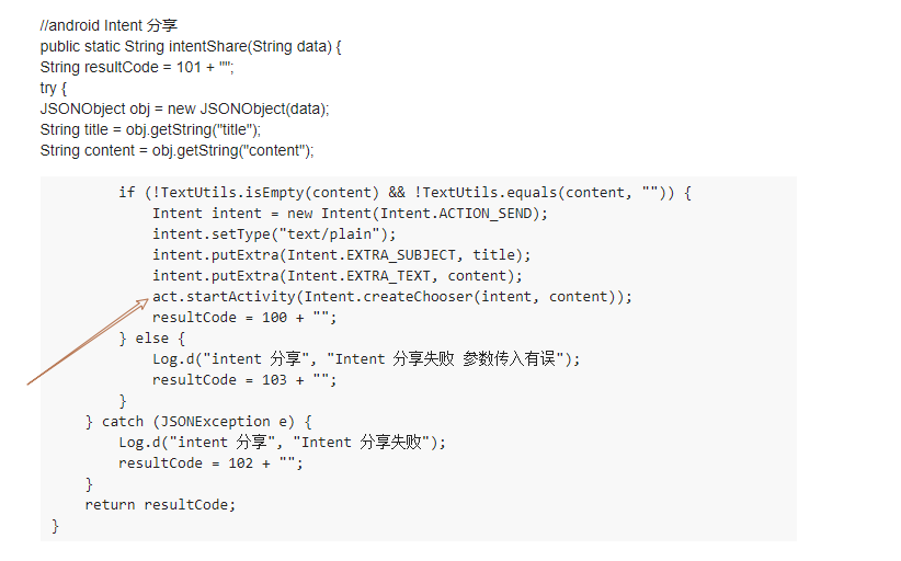 Log.d("intent 分享", "Intent 分享失败 参数传入有误");