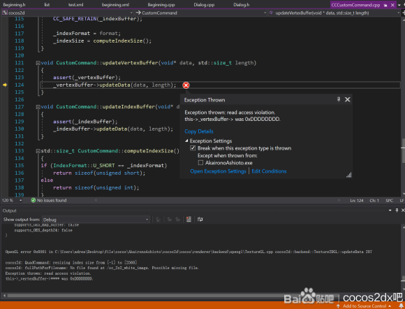 ps:有时候出现的不是_vertexbuffer这里的访问冲突,但是绝大部分时候都是这里报错