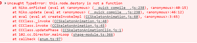 我想销毁这个预制资源 但是提示没有销毁方法 想知道是哪里出现了问题 检查了this.node 发现其中没有destory方法只有active等等。