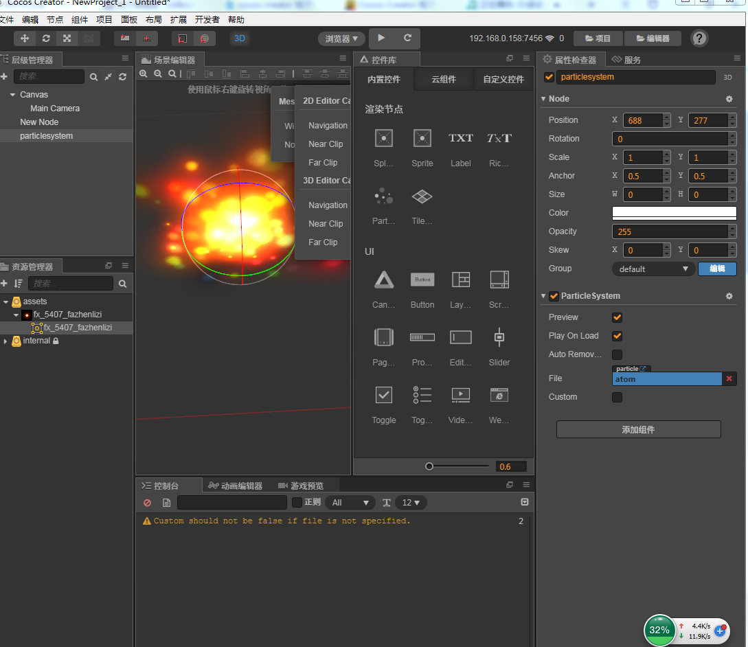 找到了 原来两个软件编辑器 一个是creator 一个是creator3d 两个是不同的 做特效还是用后面3d的比较好控制