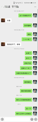 至此为止,2月份的工资,最大的一部分,5600元迟迟不发。现在已经从10/27号开始失联【微信没有删,就是不回复】,至发帖为止,也没有给予准确的回复。