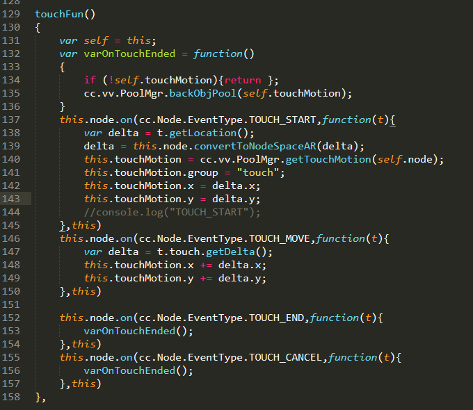 2、想象中的实现方式:因为在对象生成的时候,已经触摸了,在createEnemy里面监听不了touch start,我就只添加touch move的监听,再自己emit。
