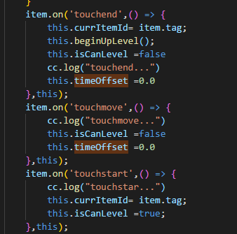 touchstart 就开始计算时间,在update里去判断触发事件,touchmove或者取消事件或者触发事件后关闭标识。