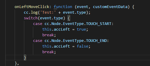 在官网提供的起手游戏项目中尝试添加按钮控制主角移动,截获到的按钮事件只有touchend。