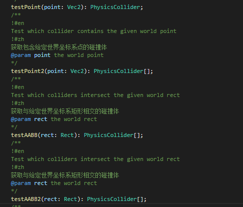如果需要代码提示,在creator.d.ts原有的testAABB和testPoint下方分别加入以下代码即可,如图: