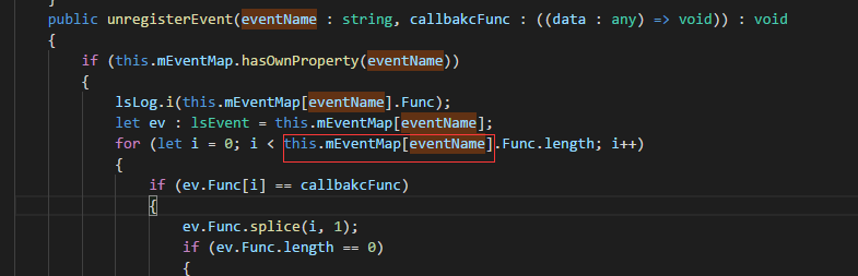 注意上面那个lsLog.i都把this.mEventMap[eventName].Func打印出来了