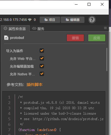 背景:原本的js项目,js库直接当插件脚本使用就行,后来转入ts项目,原本的js库不能够当做插件脚本来使用了,参考https://forum.cocos.org/t/ts-js/62224这个帖子(我用的是第3种),可以再浏览器里正常使用插件方法。
