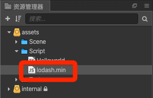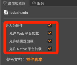将下载下来的loadash.min.js文件放入creator中,并设置为插件脚本