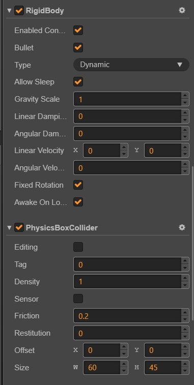 小鸟向下落需要用到物理引擎,所以需要刚体和物理碰撞体,刚体的类型当然就是动态(Dynamic)
