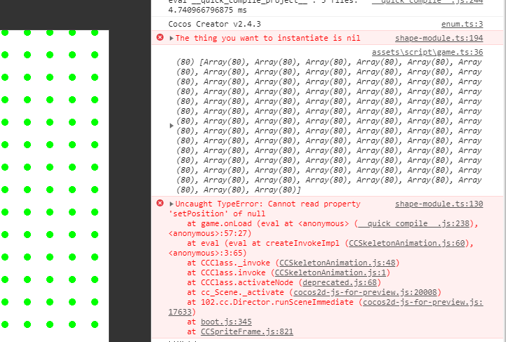 你的预制体可能没有挂成功 看看 194行 want to insantiate is nil