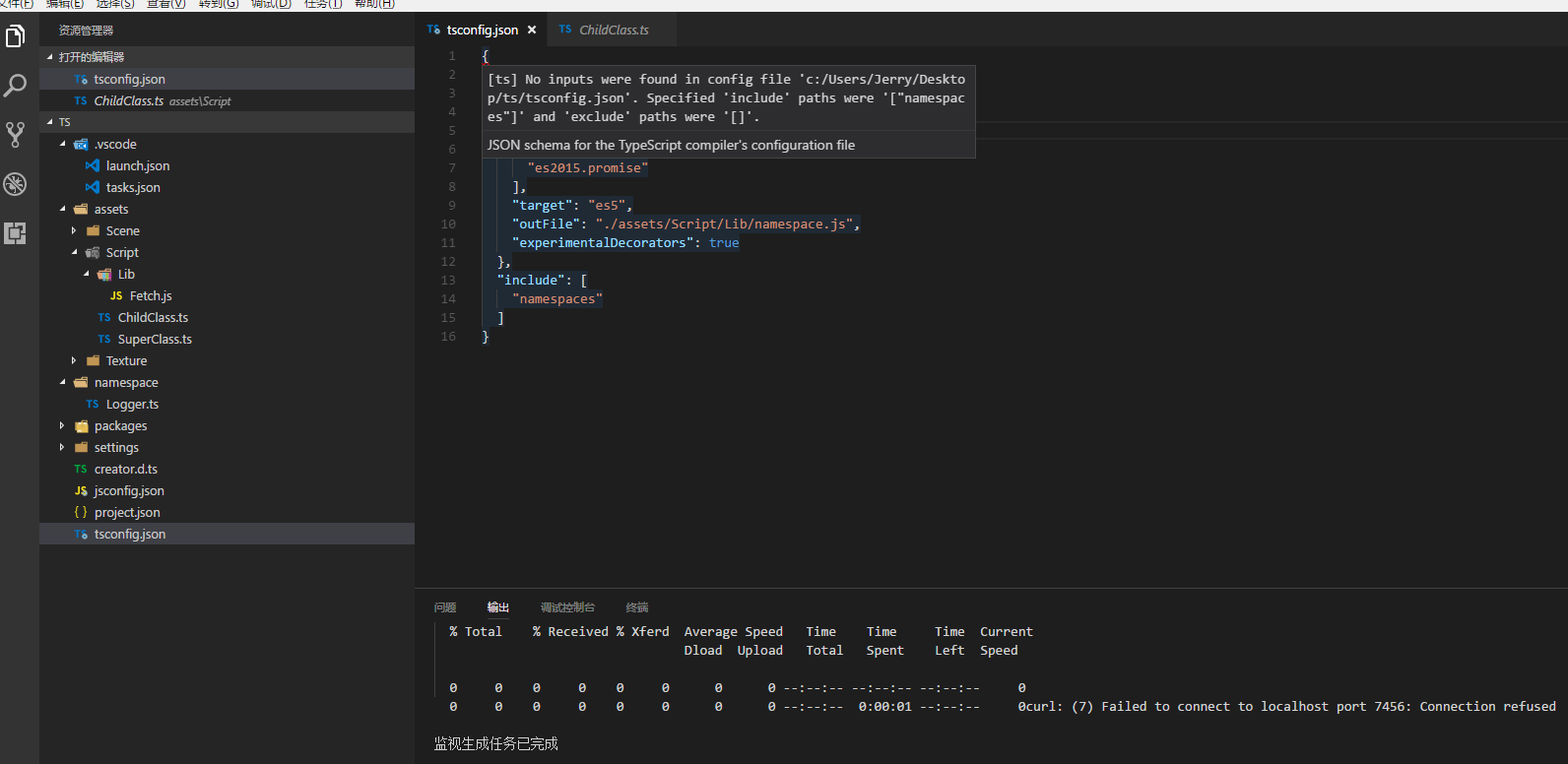 4 在namespace文件夹下 执行 tsc命令(开监听)