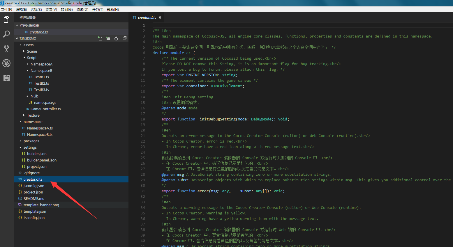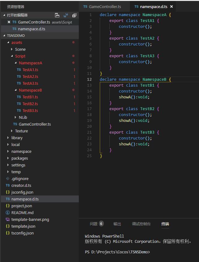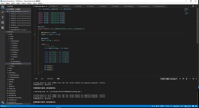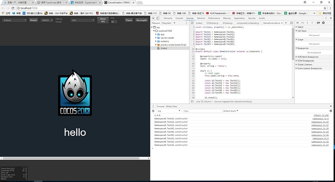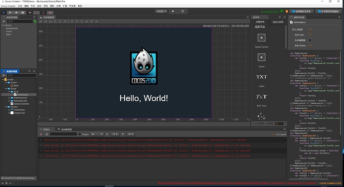 使用Typescript开发时多个namespace要怎么处理,我这边做测试能在chrome上正常运行,但是Cocos Creator有报错,我有哪个步骤做错了么?