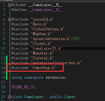 在GameShop.h里添加ui/CocosGUI.h后,如图