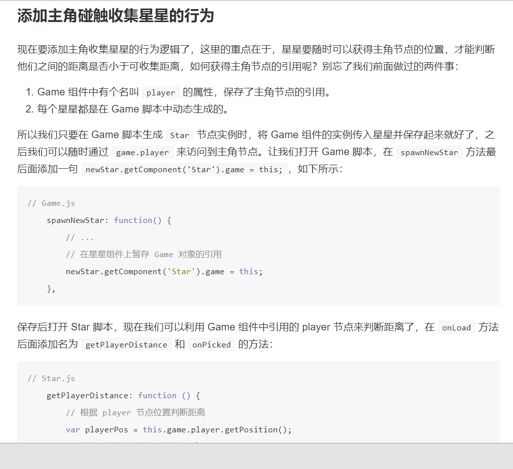 https://docs.cocos.com/creator/2.1/manual/zh/getting-started/quick-start.html在new上暂存Game对象的引用** newStar.getComponent(‘Star’).game=this;**