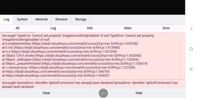 详细报错信息,包含调用堆栈: 启动游戏页面安卓手机报错,IOS手机没报错: