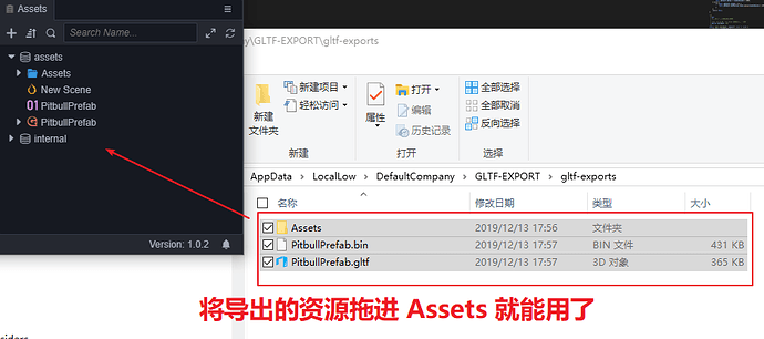 打开相应的导出目录,将导出的资源拖入到 creator 3d 中就可以使用了