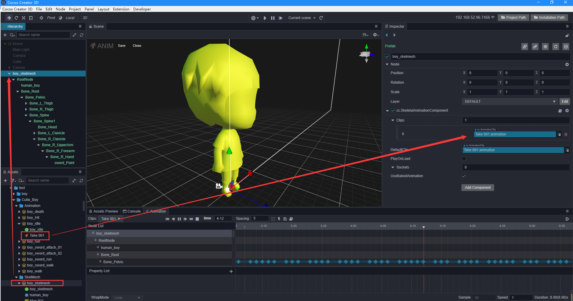 这里边动画和模型数据是分开存放的。。Blender对Fbx的导入导出支持的也不是很好,估计你得找一下专业美术看看了。。
