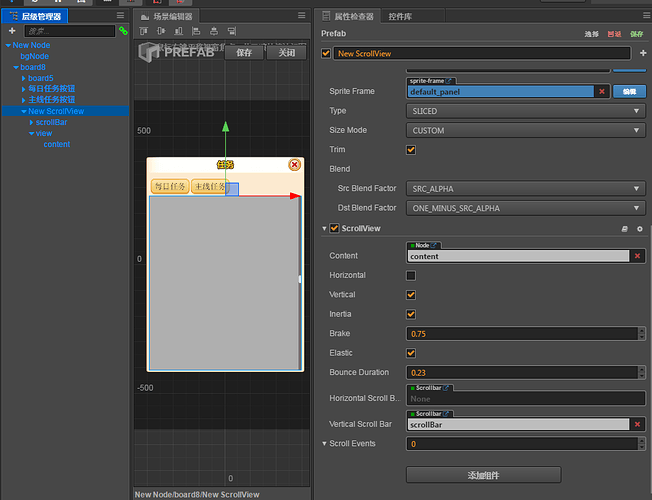 我制作了一个动态图片:具体的效果是这样子的,没有正确回弹,并且拉不到底部,这种情况有时会发生,有时又正常,大部分情况下都是发生异常!,然而我在其他prefab中做的scrollview就没有出现这个问题,唯独这个,这个预制体我已经做了2个一模一样的,还是会复现,