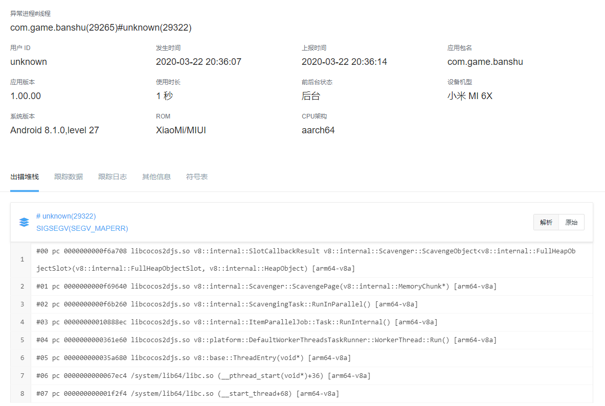 这个概率高吗?这个堆栈看不出任何线索,就运行1秒,应该是V8初始化阶段就崩了