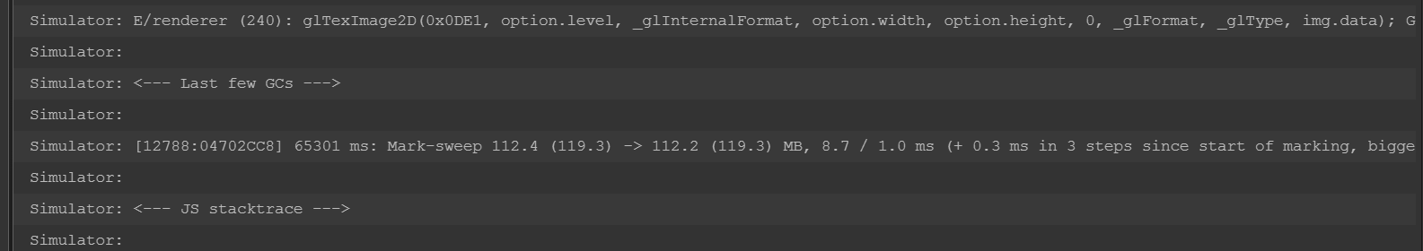 结论,由加载资源相关产生ArrayBuff、Float32Array、Array等对象会爆增,这些对象的释放会比资源释放慢,经过堆叠后会导致崩溃(v8::New, is heap out of memory:false),打印对象显示是ArrayBuff。