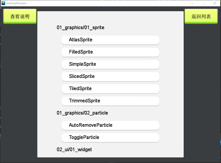 使用Cocos Creator v1.2.2新建一个名为Examples的范例集合,构建发布项目,点击构建,然后使用VS 2013打开Examples\build\jsb-default\frameworks\runtime-src\proj.win32\examplecases.sln,生成Debug解决方案显示成功,点击“本地Windows 调试器”能正常启动,显示如下: