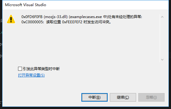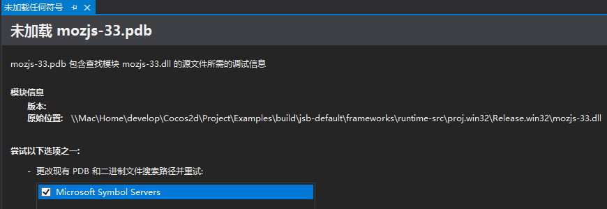 在Release模式下,提示未加载mozjs-33.pdb,显示如下: