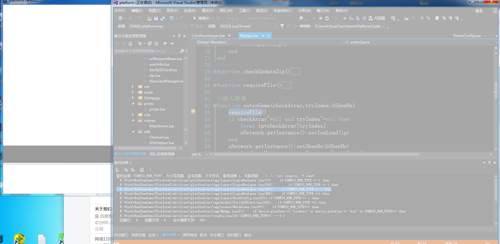 visual studio 一调试cocos2d lua项目就卡死是怎么回事?