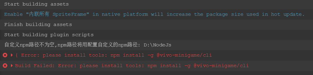 vivo-minigamae/lic是安装过的,其他工程都是可以正常打包的。唯独现在手里这个工程不行,很无语