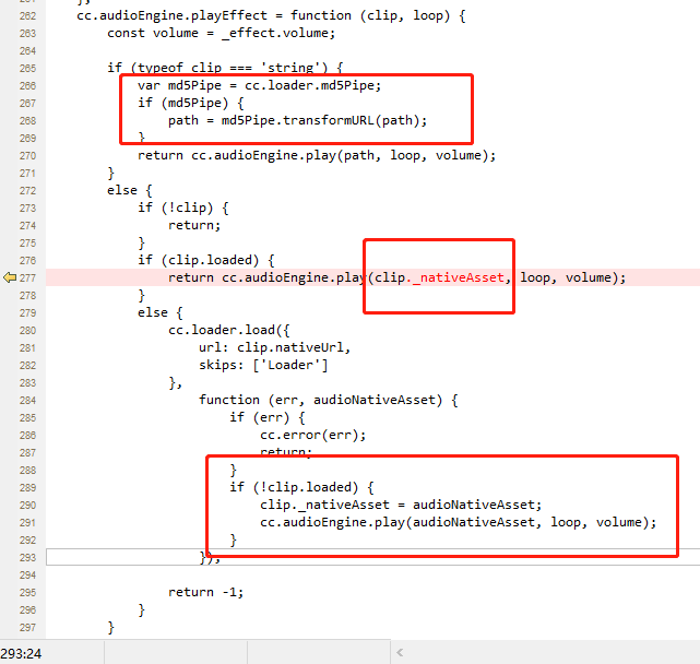 如下图 277 行,cc.audioEngine.play传 clip 不行么,干嘛还传clip._nativeAsset ?