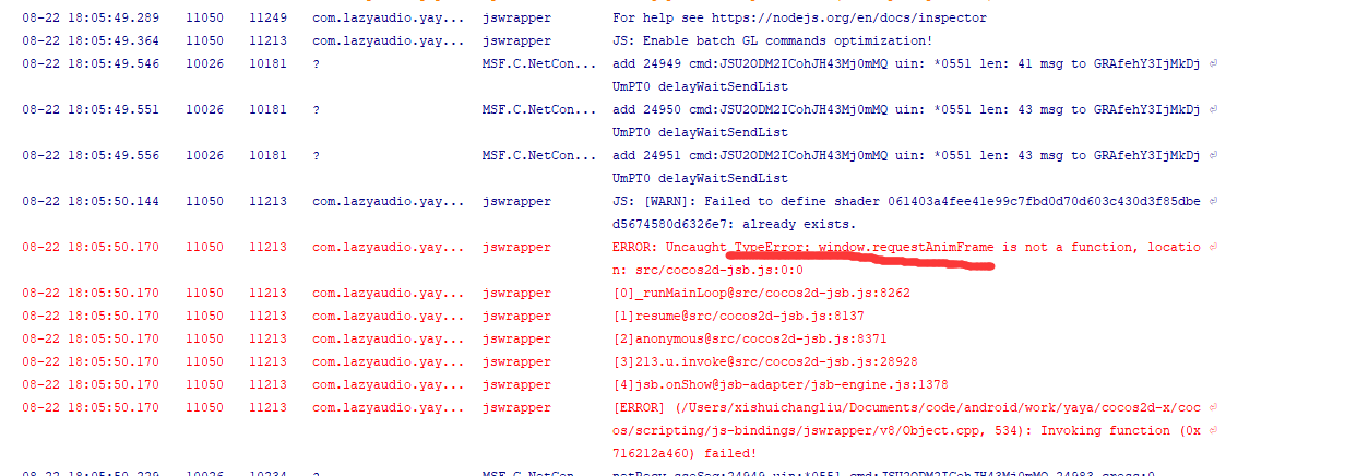 打扰你了,遇到了同样的报错,于是尝试了几种修改并重新构建还是同样的错误。(注释的代码是我分别尝试的方案)版本2.1.1,手机荣耀10,直接修改cocos2d-jsb里面的window。requestanimframe=16不会报错但是会导致黑屏,求解决方案