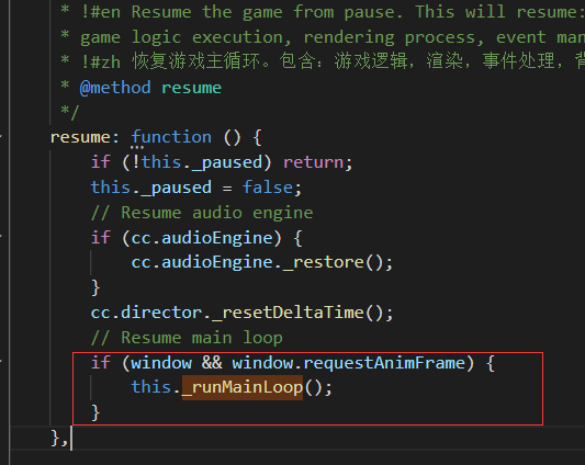 我不知道修改CCGame.js中出现了什么问题,导致编译出来的cocos2d-jsb.js一直没修改成功,后来直接尝试修改编译出来的文件cocos2d-jsb.js,解决了图上的问题,但是报错虽然解决了,但是首次加载依旧会黑屏一段时间,下图代码是直接修改的编译出来的代码