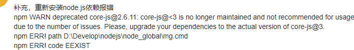 npm ERR! File exists: D:\Develop\nodejs\node_global\mg.cmd
