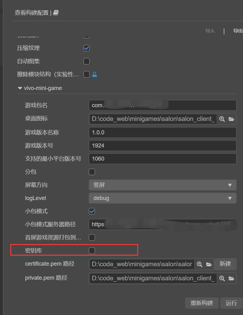 生成证书是使用creator构建面板提供的界面进行生成的