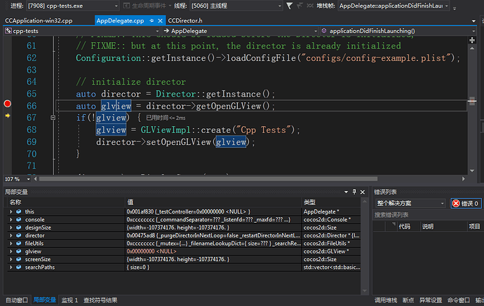 具体情况就是图中情况,运行就报错,glview为nullptr的初始值,没有被赋值就直接调用了,是不是缺少特定的文件导致的,或者是360误删? 顺便问一下,我电脑在使用cocos create 运行模拟器时也会报错StackHash。是不是我电脑有问题啊。