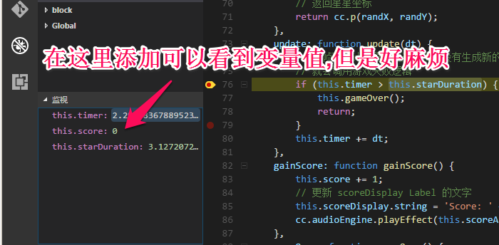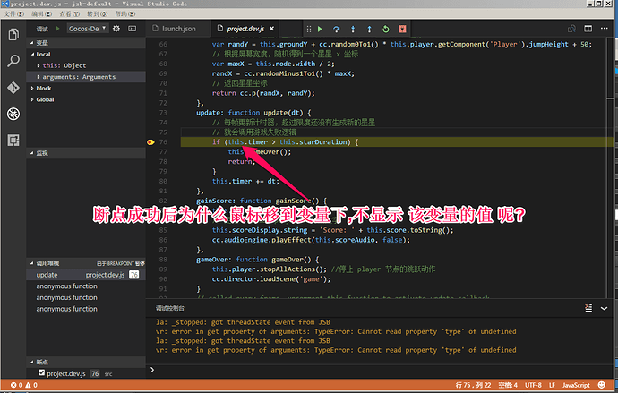为什么使用cocos-debug+vscode调试时,成功断点后 无法实时显示鼠标所指的变量值,这样调试就没有意义了啊?