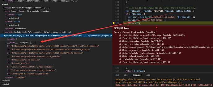 看图片贴的,path 应该是存的一个绝对路径数组,Loading找不到,那应该是 loading.js脚本没有导出,导致require获取不到该脚本,在creator js脚本会被编译到同一个文件下,在动态加载任意一个脚本时,只需要导出(module.exports )该脚本就可以了,,var a = cc.class(); 如果是这个类型的,脚本会自己导出,直接require就可以了